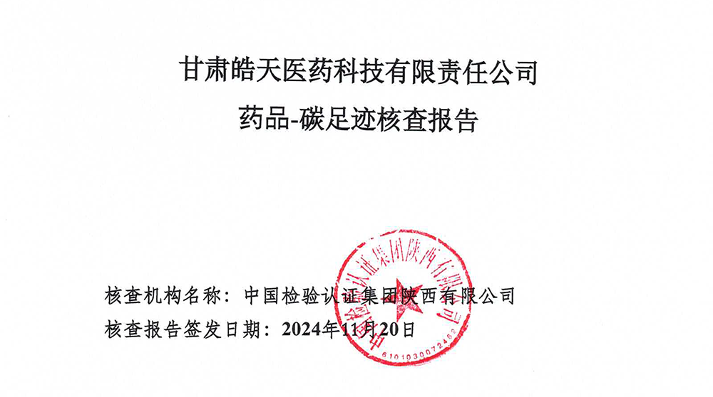 碳足跡核查報(bào)告--甘肅皓天醫(yī)藥科技有限責(zé)任公司